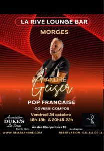 La soirée musicale se déroulera au La Rive Lounge bar à Morges et en deux parties : la première entre 18 et 19h pendant l’apéro et la seconde entre 20h15 et 22 heures pour la soirée.