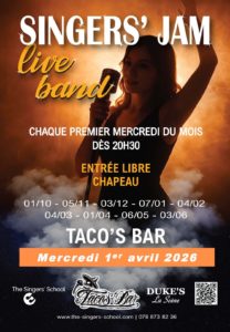 ↪ Réservations via le Taco’s Bar 021 320 15 25 ou info@tacos-bar.ch, MENTION Singers’ Jam (ne réservez pas avec The Fork)