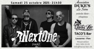 NextOne est un groupe de rock, basé dans le Grand Genève.Formé en 2020, nos racines viennent du blues, du rock, du rock alternatif mélangés dans un cocktail détonnant et bourré d’énergie. Avec plus d’une douzaine de compos, NextOne a déjà sorti 2 EP disponibles sur toutes les plateformes.