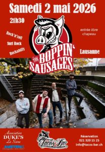 Originaire de La Chaux-de-Fonds, The Boppin’ Sausages distille un Rock’n’roll efficace relevé par une touche de Rockabilly et Surf Rock.