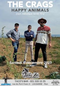 Créé en 2009, le groupe genevois The Crags connaît différentes formations avec lesquelles 3 albums et 2 EP sont enregistrés. De nombreuses dates à travers la Suisse, la France ainsi que des tournées les menant à l’est de l’Europe et en Angleterre iront de pair avec ces diverses étapes musicales. Des festivals comme le Caribana, le Montreux Jazz, Balelec ou autre Label Suisse programmeront également le groupe et plusieurs titres entreront en playlist sur Couleur3.